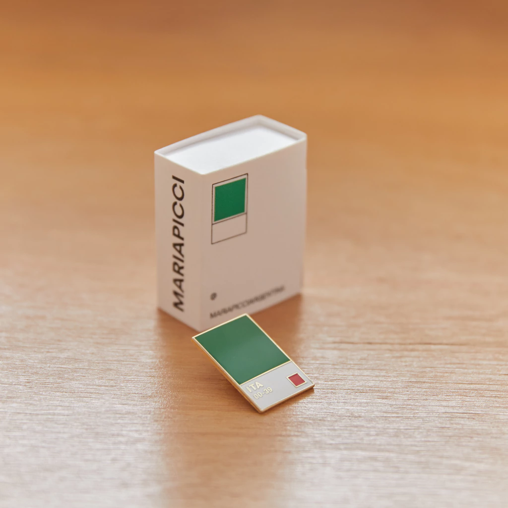 El Pin Color Italia es un prendedor que utiliza los colores de la bandera y el código internacional de Italia para generar una reflexión sobre el sentido de identidad y pertenencia. Es una pieza cargada de simbolismo que se presenta como una opción moderna y estética que intenta, a través de la utilización del lenguaje del sistema de color Pantone, captar la atención de aquellos vinculados con el diseño y el color.